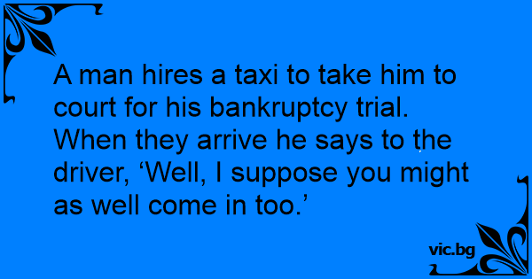 A man hires a taxi to take him to court for his bankruptcy trial.