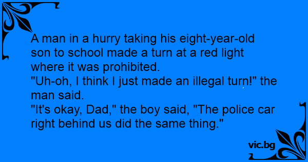 "It's okay, Dad," the boy said, "The police car right behind us did the same thing."