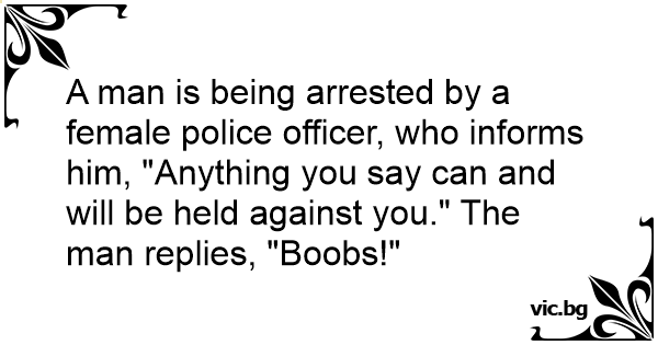 Bryster En mand bliver arresteret af en kvindelig betjent. Hun informere ham om: “ – Alt hvad du siger og gør kan og vil blive brugt mod dig”. Manden siger så: “Bryster!”