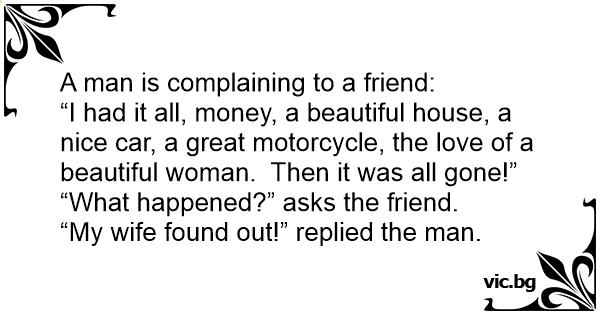 “I had it all, money, a beautiful house, a nice car, a great motorcycle, the love of a beautiful woman. Then it was all gone!”
