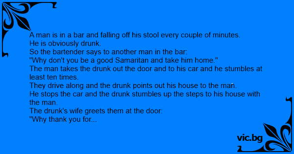 The man takes the drunк out the door and to his car and he stumbles at least ten times.