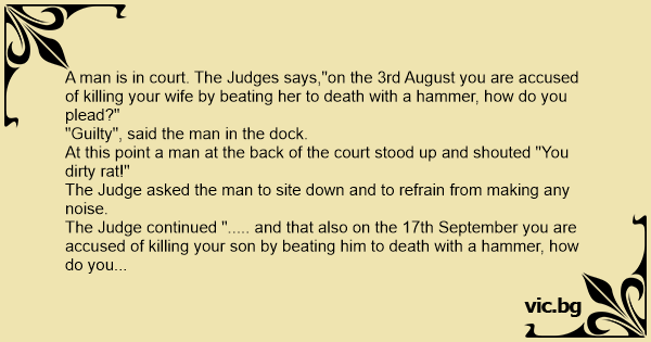 A man is in court. The Judges says,"on the 3rd August you are accused of killing your wife by beating her to death with a hammer, how do you plead?"