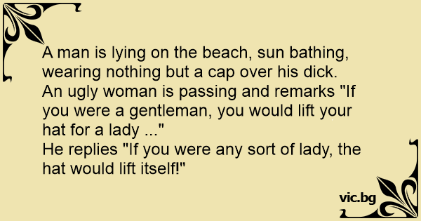 An ugly woman is passing and remarks "If you were a gentleman, you would lift your hat for a lady ..."