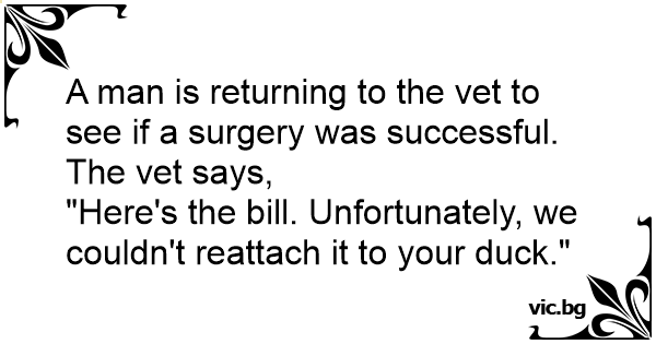 "Here's the bill. Unfortunately, we couldn't reattach it to your duck."