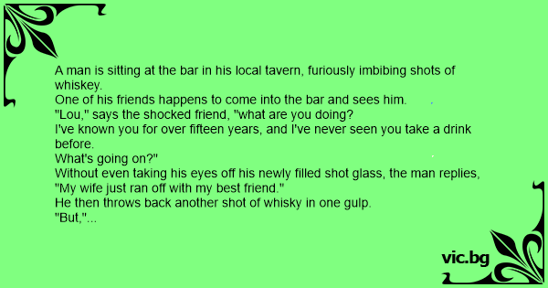 Without even taking his eyes off his newly filled shot glass, the man replies,