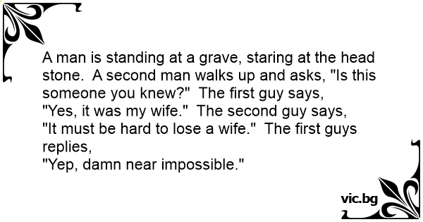 "It must be hard to lose a wife." The first guys replies,