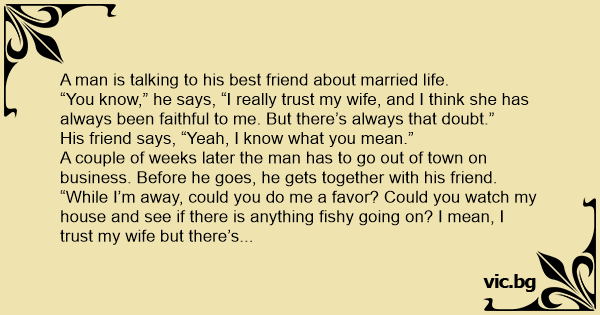 “While I’m away, could you do me a favor? Could you watch my house and see if there is anything fishy going on? I mean, I trust my wife but there’s always that doubt.”