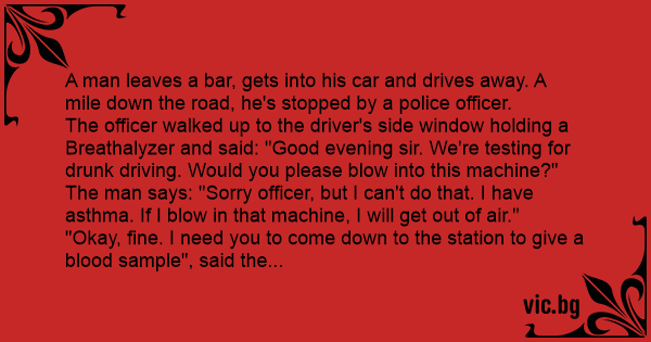 The man says: "Sorry officer, but I can't do that. I have asthma. If I вlоw in that machine, I will get out of air."