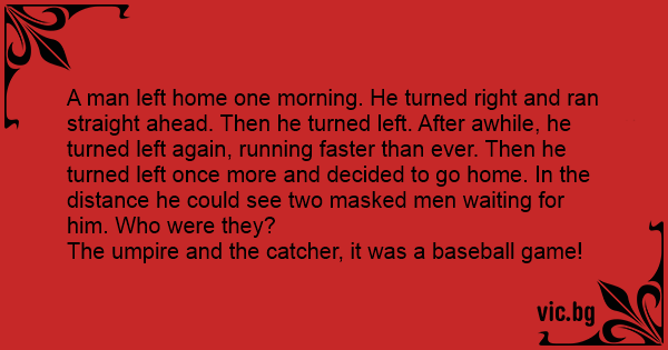 A man left home one morning. He turned right and ran straight ahead. Then he turned left. After awhile, he turned left again, running faster than ever. Then he turned left once more and decided to go home. In the distance he could see two masked men waiting for him. Who were they?