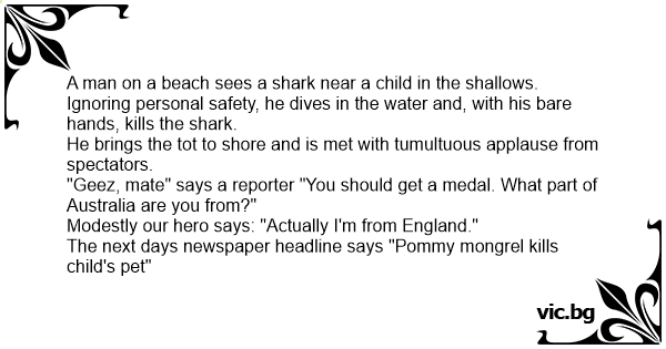 The next days newspaper headline says "Pommy mongrel kills child's pet"