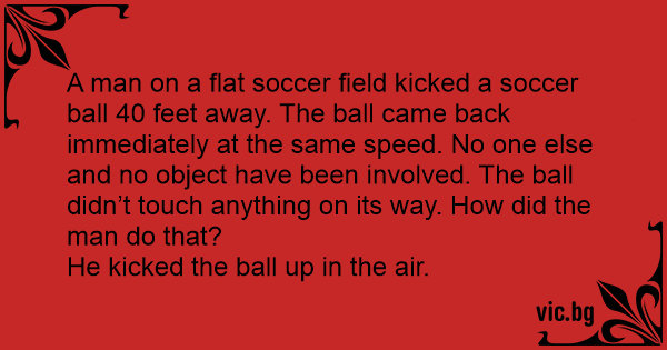 A man on a flat soccer field kicked a soccer ball 40 feet away. The ball came back immediately at the same speed. No one else and no object have been involved. The ball didn’t touch anything on its way. How did the man do that?
