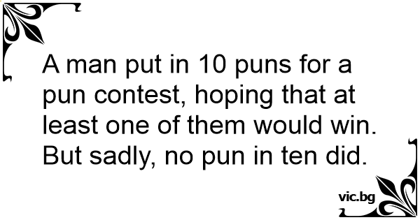 A man put in 10 puns for a pun contest, hoping that at least one of them would win. But sadly, no pun in ten did.