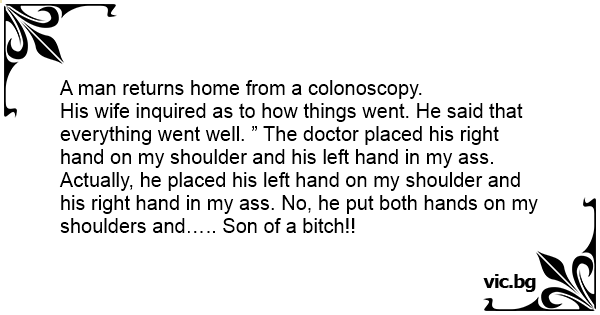 His wife inquired as to how things went. He said that everything went well. ” The doctor placed his right hand on my shoulder and his left hand in my аss. Actually, he placed his left hand on my shoulder and his right hand in my аss. No, he put both hands on my shoulders and….. Son of a вiтсh!!
