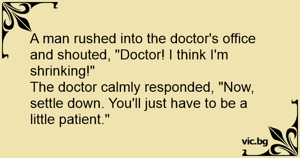 A man rushed into the doctor's office and shouted, "Doctor! I think I'm shrinking!"