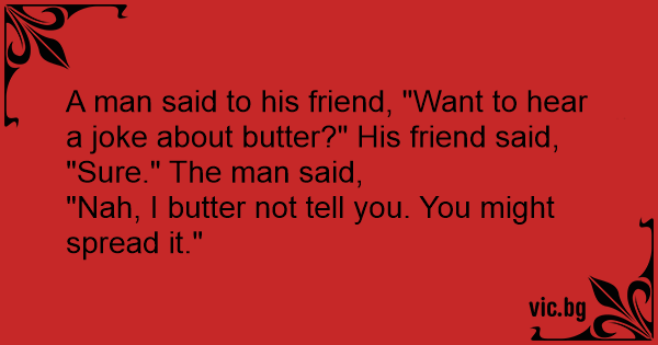 A man said to his friend, "Want to hear a joke about butter?" His friend said,