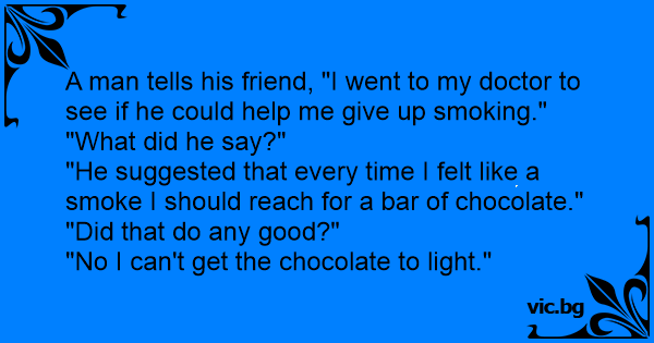 A man tells his friend, "I went to my doctor to see if he could help me give up smoking."