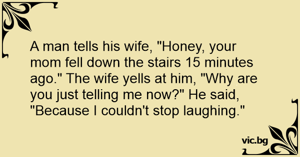 A man tells his wife, "Honey, your mom fell down the stairs 15 minutes ago." The wife yells at him, "Why are you just telling me now?" He said,