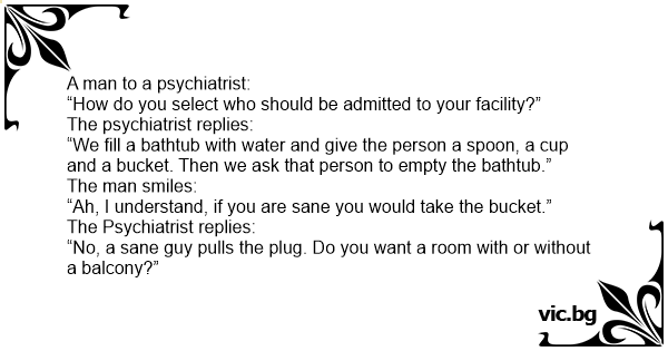 “Ah, I understand, if you are sane you would take the bucket.”