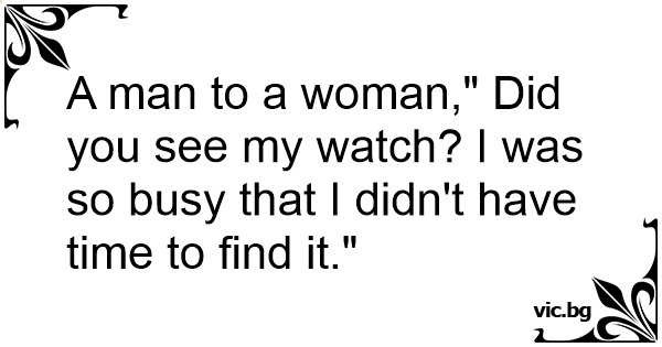 A man to a woman," Did you see my watch? I was so busy that I didn't have time to find it."