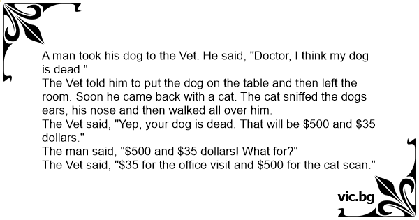 The Vet said, "Yep, your dog is dead. That will be $500 and $35 dollars."
