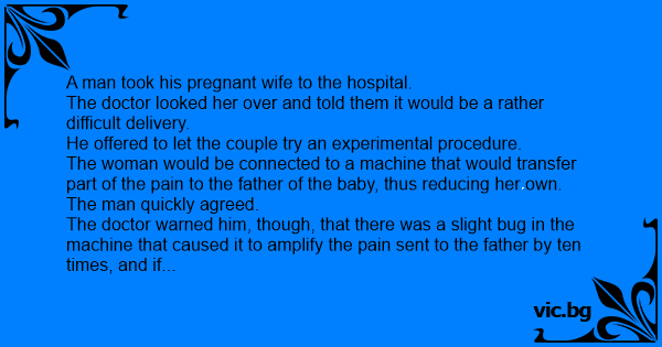 The doctor warned him, though, that there was a slight bug in the machine that caused it to amplify the pain sent to the father by ten times, and if the pain became too much for to bear would he please let the doctor know.
