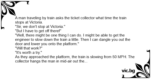 "Man you're lucky I was here to help! This train doesn't even STOP in Victoria!"