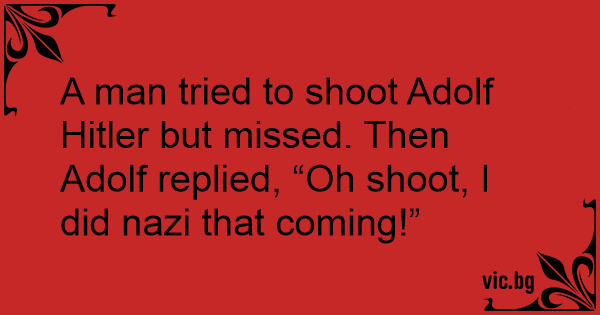 A man tried to shoot Adolf Нiтlеr but missed. Then Adolf replied, “Oh shoot, I did nаzi that coming!”