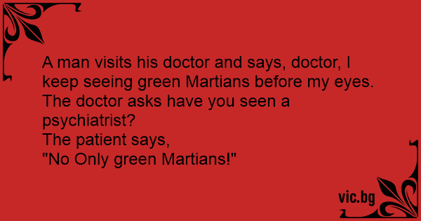 A man visits his doctor and says, doctor, I keep seeing green Martians before my eyes.
