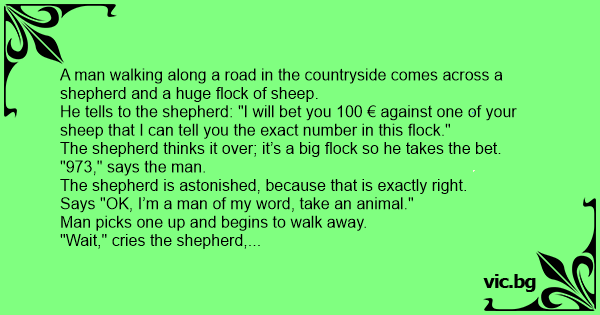 The shepherd thinks it over; it’s a big flock so he takes the bet.