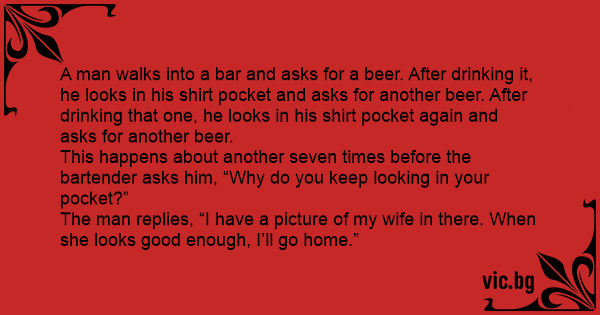 The man replies, “I have a picture of my wife in there. When she looks good enough, I’ll go home.”