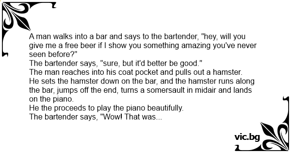 The man finishes his вееr and says to the bartender, "hey, if I show you something else amazing that you've never seen before, will you give me another free вееr?"