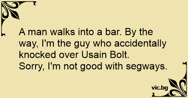 A man walks into a bar. By the way, I'm the guy who accidentally knocked over Usain Bolt.