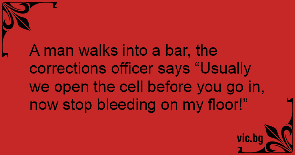 A man walks into a bar, the corrections officer says “Usually we open the cell before you go in, now stop bleeding on my floor!”