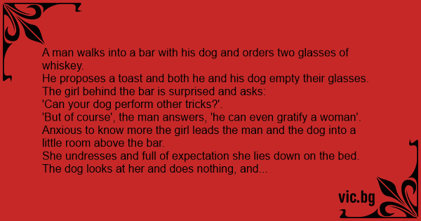 A man walks into a bar with his dog and orders two glasses of whiskey.