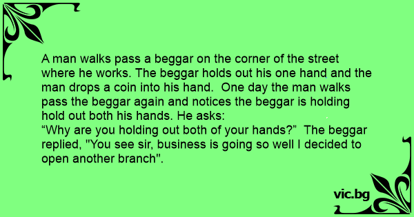“Why are you holding out both of your hands?” The beggar replied, "You see sir, business is going so well I decided to open another branch".
