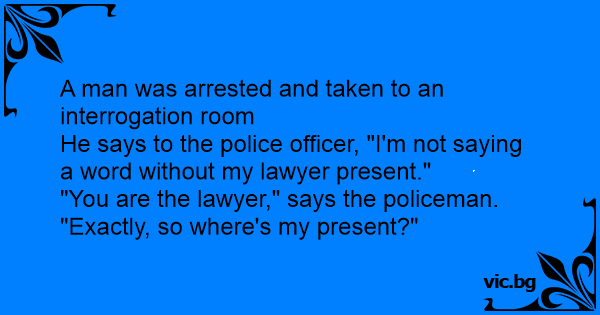 He says to the police officer, "I'm not saying a word without my lawyer present."
