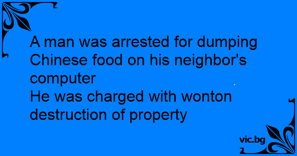 A man was arrested for dumping Chinese food on his neighbor's computer