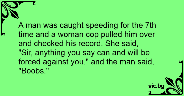 A man was caught speeding for the 7th time and a woman cop pulled him over and checked his record. She said,
