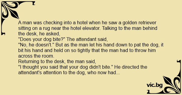 "I thought you said that your dog didn't bite." He directed the attendant's attention to the dog, who now had returned to the rug. The attendant simply answered, "My friend that is NOT my dog."