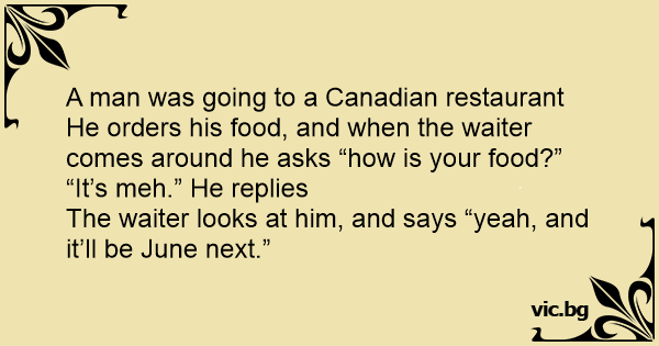 The waiter looks at him, and says “yeah, and it’ll be June next.”