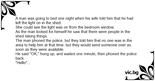 "Hello" he said, "I just called you a minute ago because there were people in my shed.