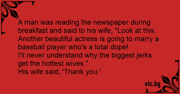 A man was reading the newspaper during breakfast and said to his wife, "Look at this. Another beautiful actress is going to marry a baseball player who's a total dope!