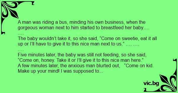 A man was riding a bus, minding his own business, when the gorgeous woman next to him started to breastfeed her baby….
