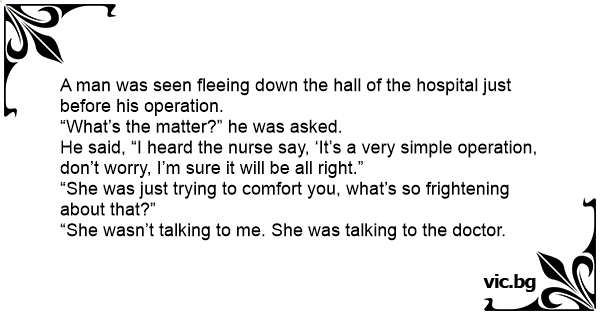 He said, “I heard the nurse say, ‘It’s a very simple operation, don’t worry, I’m sure it will be all right.”
