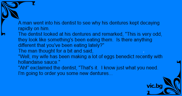 A man went into his dentist to see why his dentures kept decaying rapidly on him.