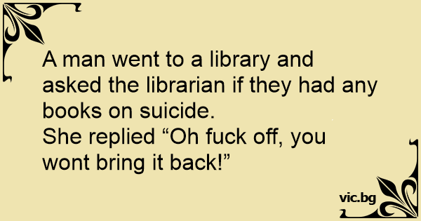 A man went to a library and asked the librarian if they had any books on suicide.