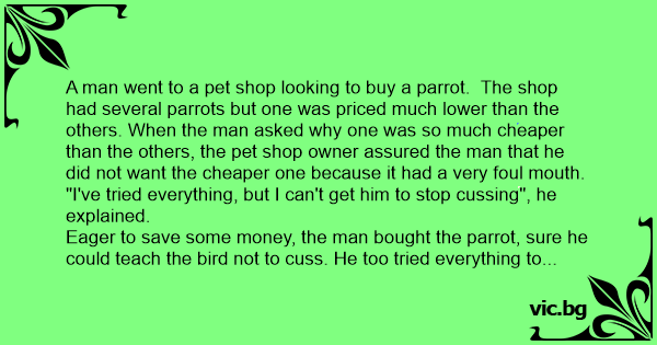 A man went to a pet shop looking to buy a parrot. The shop had several parrots but one was priced much lower than the others. When the man asked why one was so much cheaper than the others, the pet shop owner assured the man that he did not want the cheaper one because it had a very foul mouth.