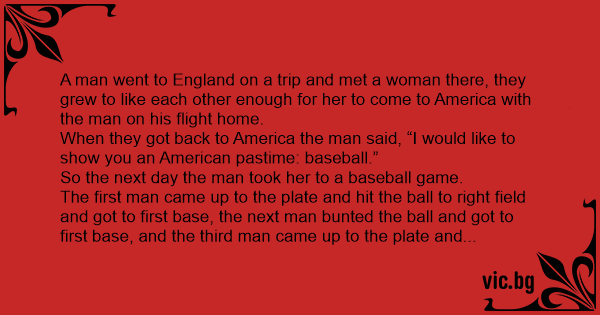 When they got back to America the man said, “I would like to show you an American pastime: baseball.”