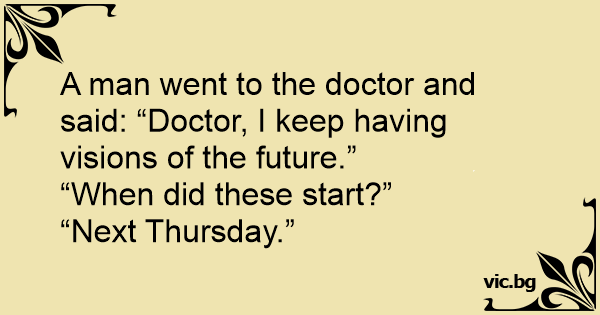 A man went to the doctor and said: “Doctor, I keep having visions of the future.”