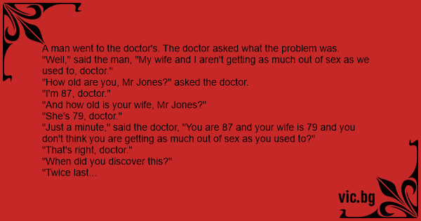 "Well," said the man, "My wife and I aren't getting as much out of sеx as we used to, doctor."